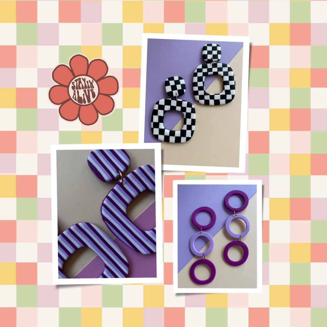 From funky geometric patterns to whimsical pop culture references, every creation is a unique expression of the past brought into the present. Explore my wearable art and dance through history with each collection, every earring tells a story and every design is a nod to the groovy days of yesteryear!